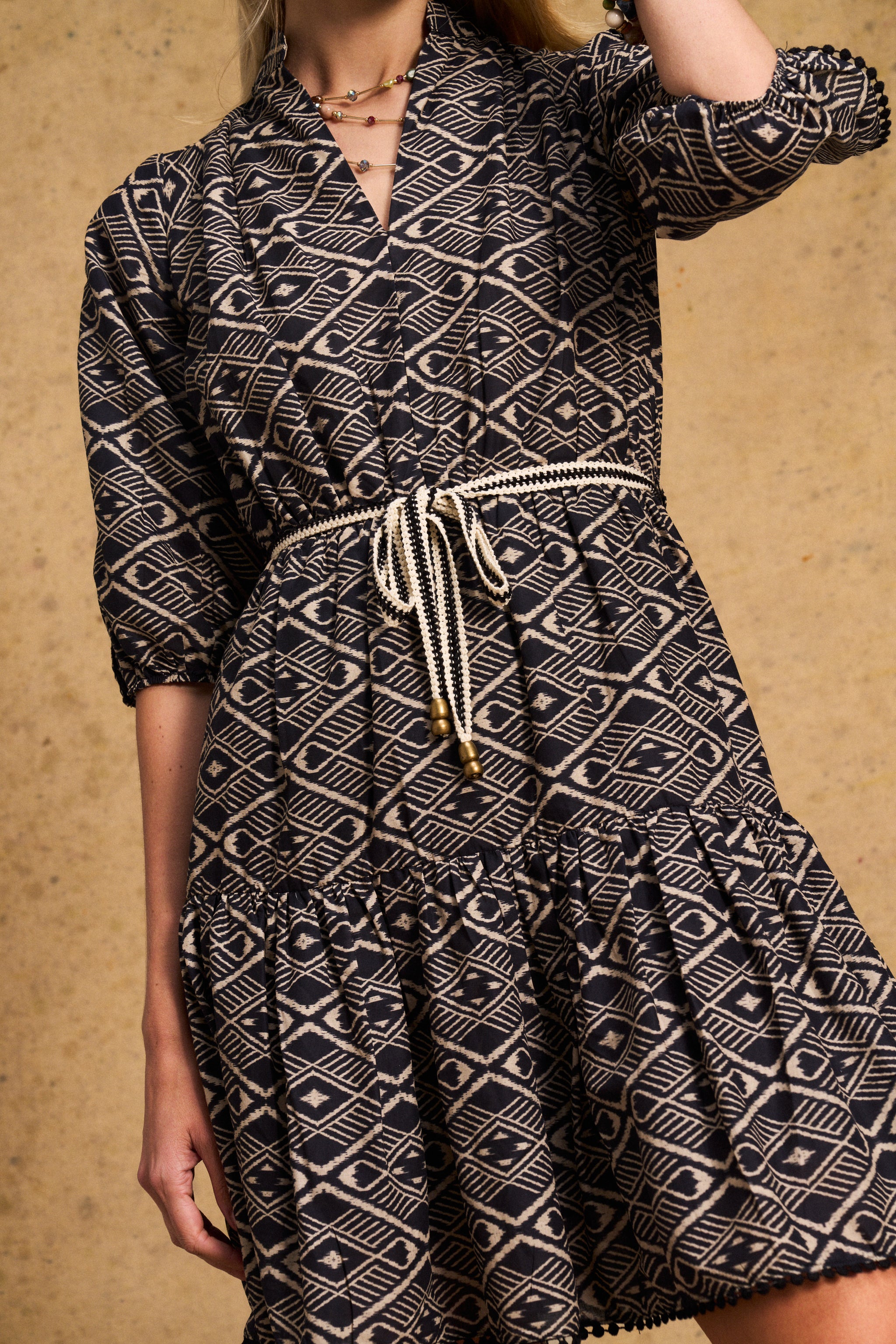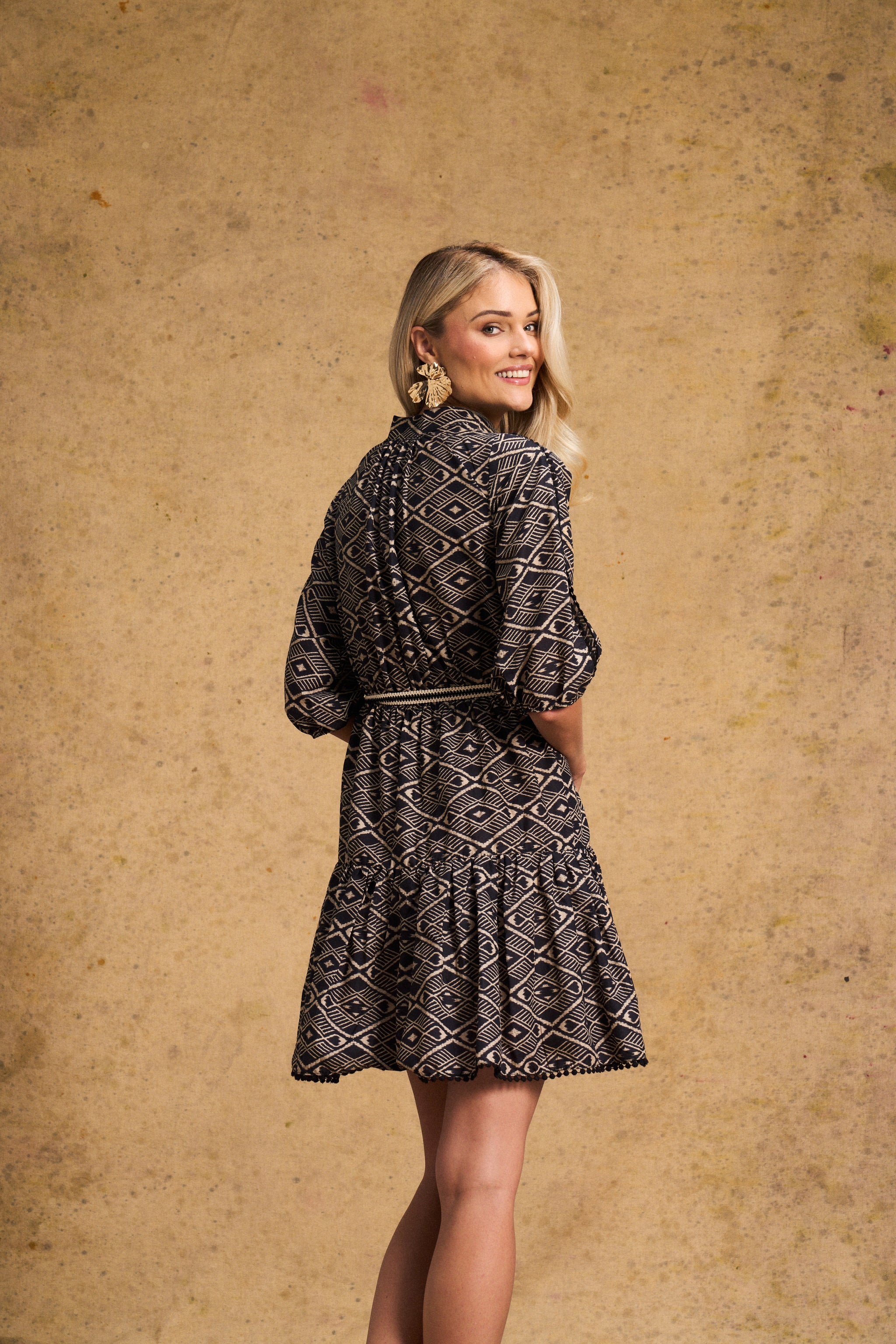The Marrakech Mini is crafted from soft, breathable cotton, providing both comfort and style during warmer months. Enhanced with a delicate black pom-pom trim, it adds a subtle yet refined detail to the design. Its short length offers a graceful silhouette, making it an impeccable selection for elegant summer wardrobes. Whether worn casually or dressed up, this piece combines sophistication with ease, perfect for those seeking understated charm in their seasonal attire.