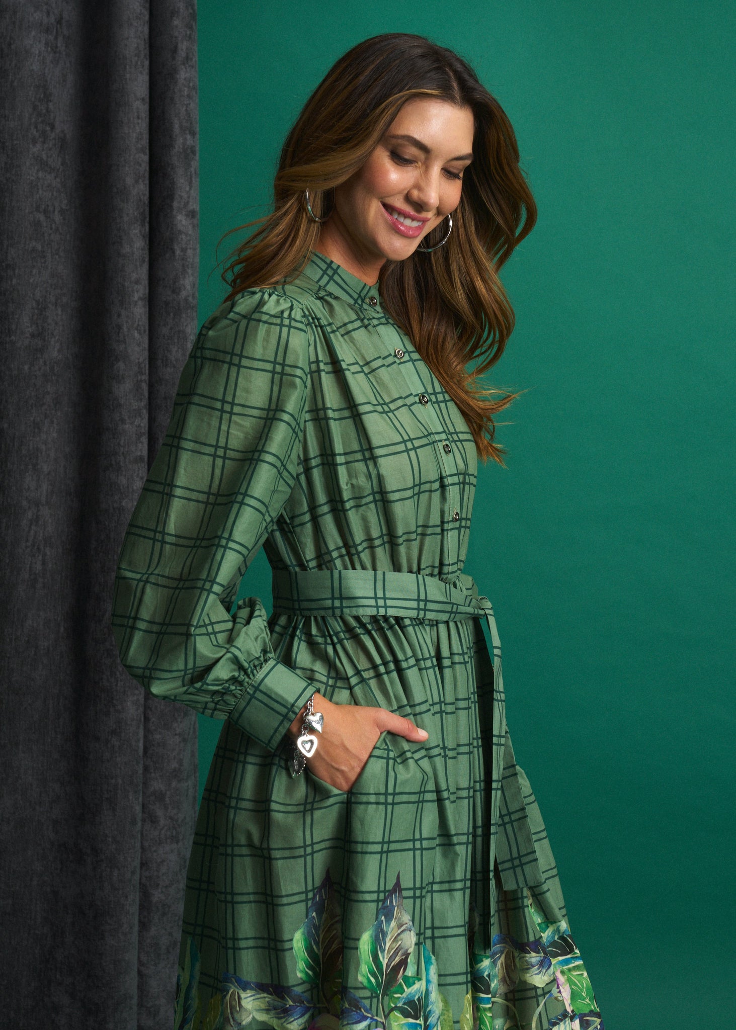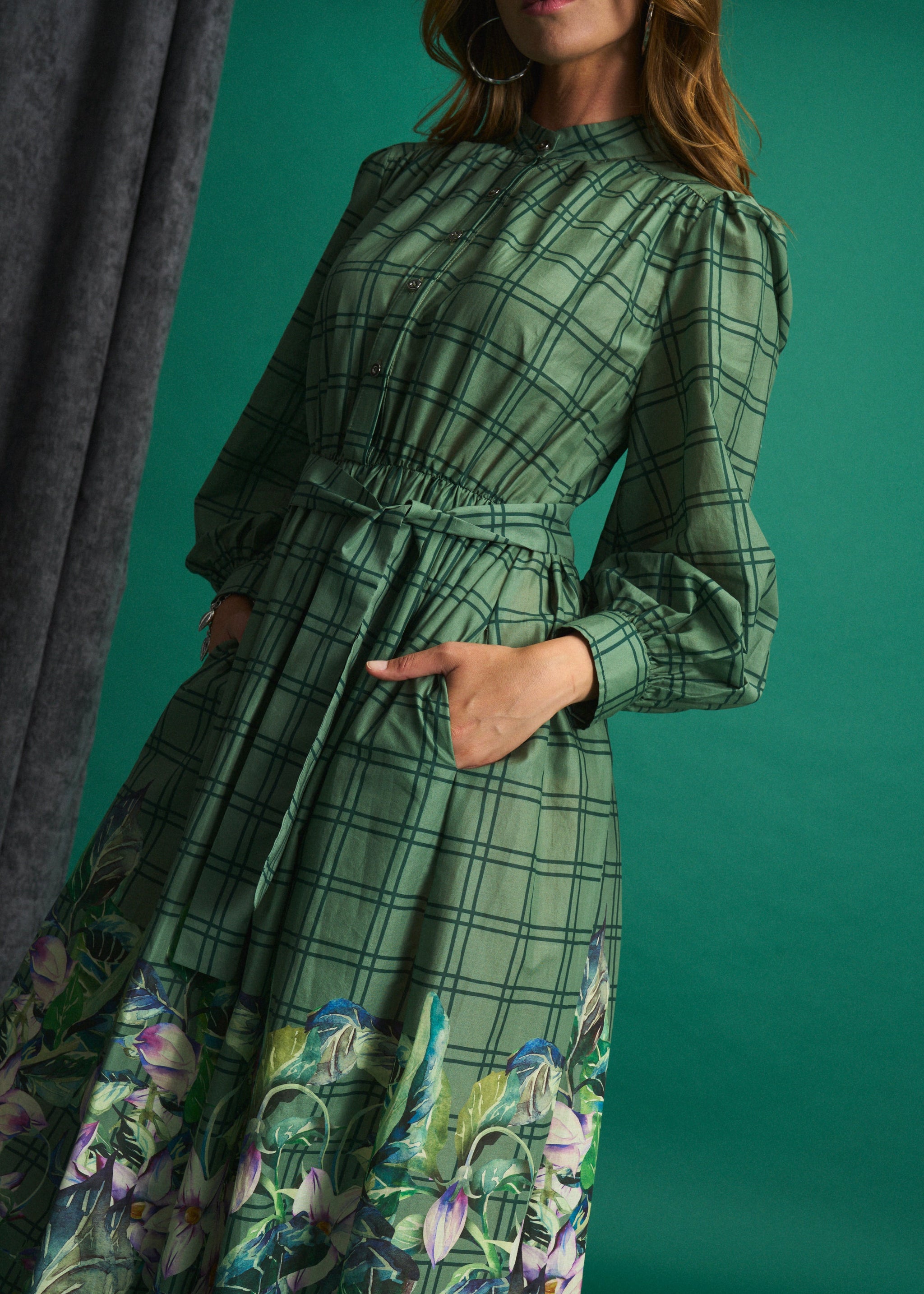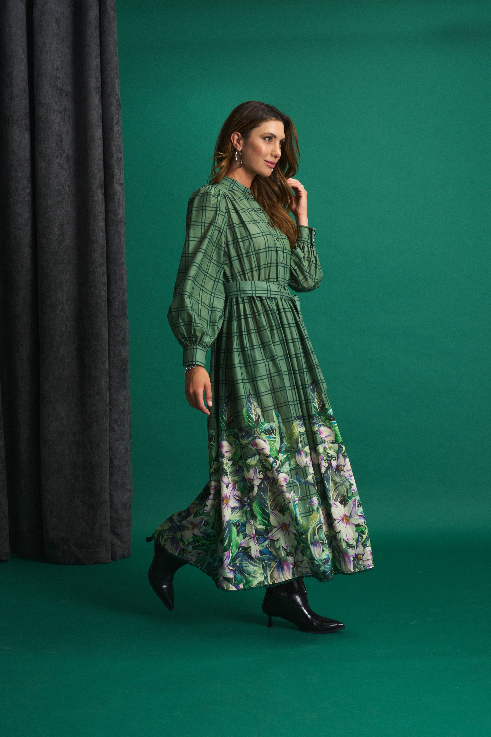 Green Meadow Check Maxi Dress