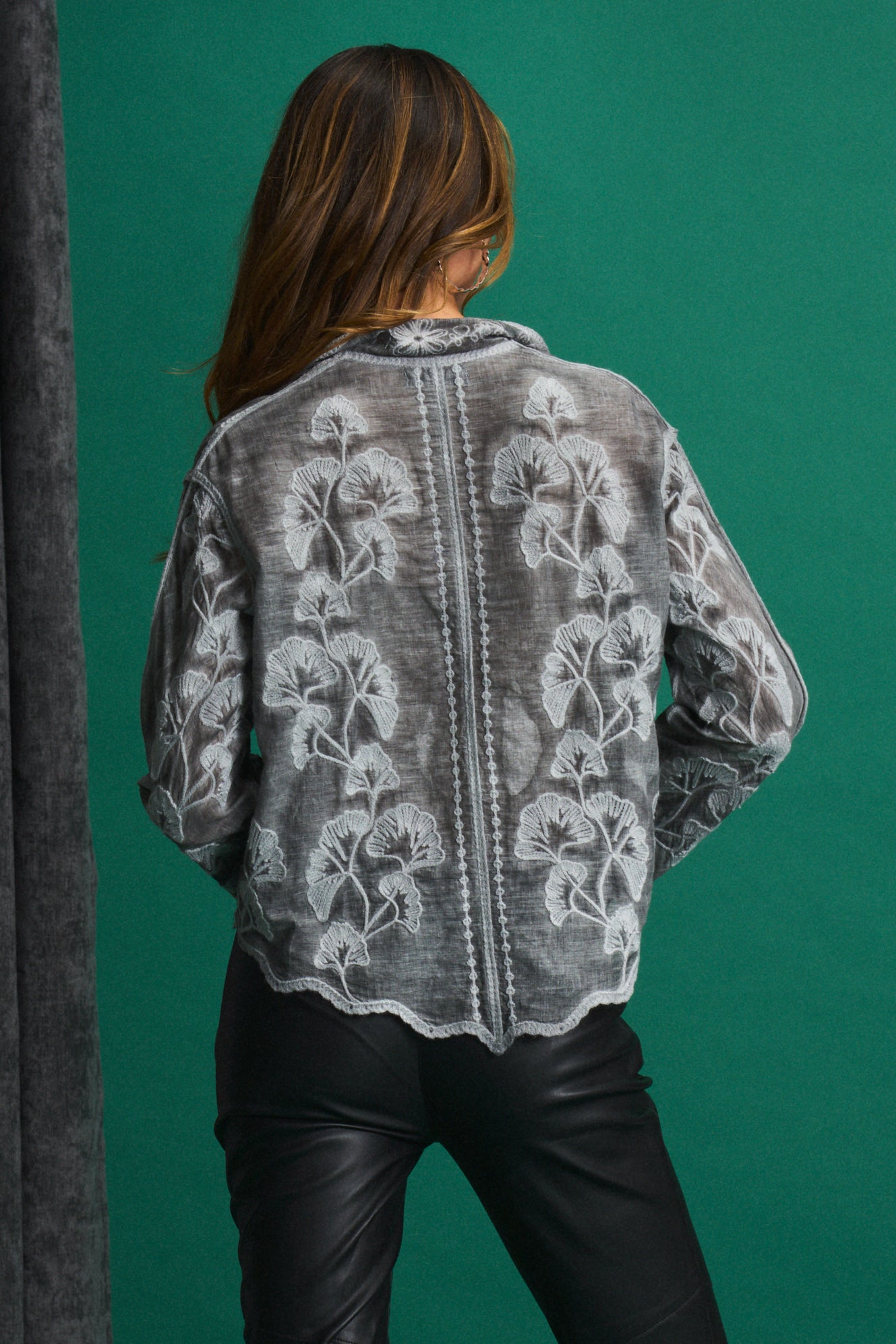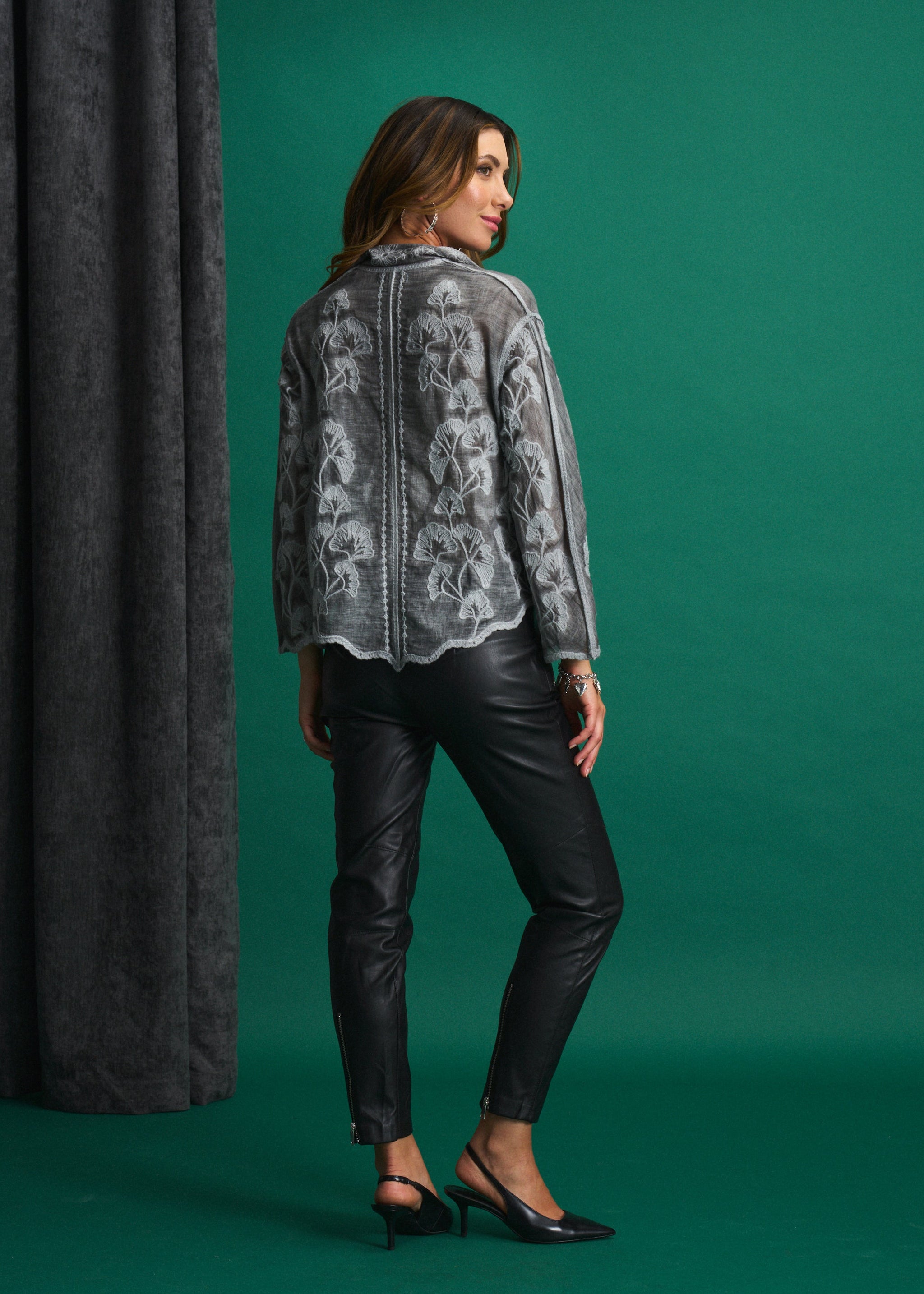 • Unique overdyed finish in grey & charcoal tones