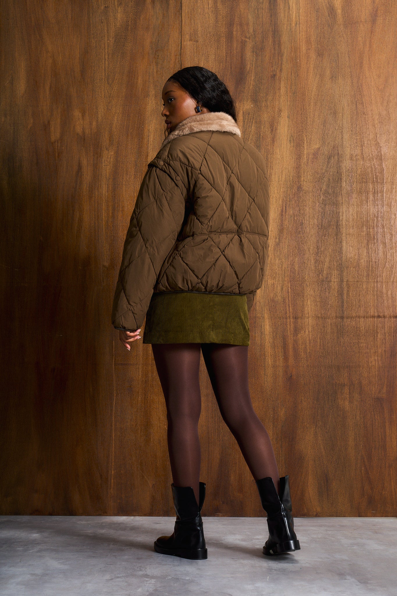 Crafted for both comfort and style, the quilted body provides lightweight insulation while maintaining a sleek, structured silhouette. The soft fur trim adds a touch of elevated elegance, framing the design with a cosy, premium finish.